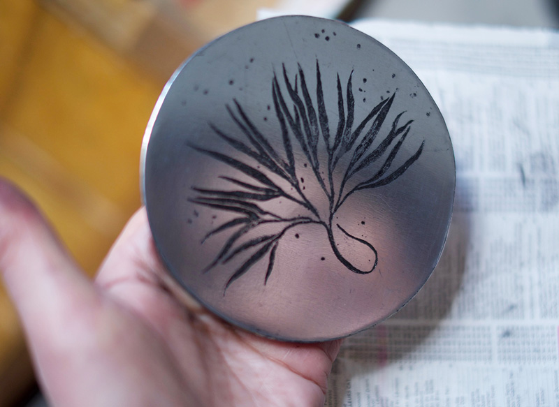 - pointe sèche sur différents supports (zinc, rhénalon, tetra pak),
