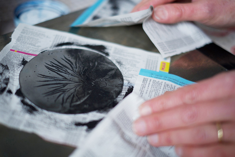 Les participants repartent avec leur matrice (plaque) et leurs impressions.